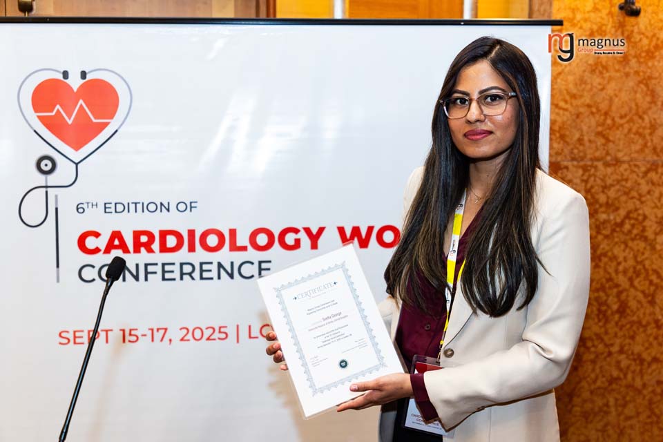 Sneha George From University Hospitals of Derby and Burton, United Kingdom With her Oral Presentation Certificate